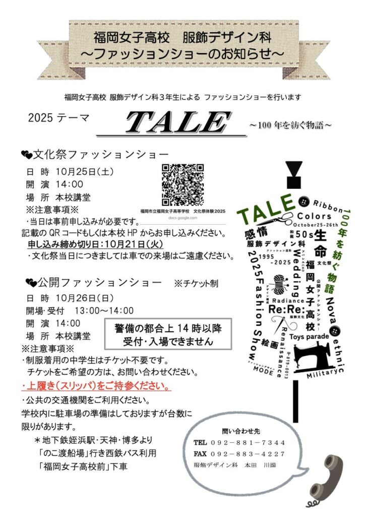 服飾デザイン科3年生による、公開ファッションショーを行います。