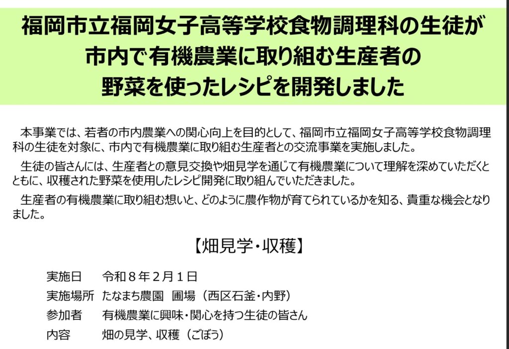 福岡市有機農業推進事業 × 福岡市立福岡女子高等学校食物調理科